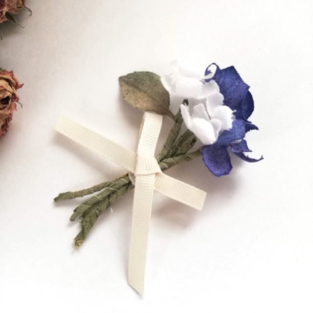 青い花束とグログランリボンのブローチ