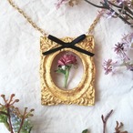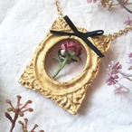 アンティーク調の額縁モチーフに、ちいさな薔薇の花が揺れるネックレスです。